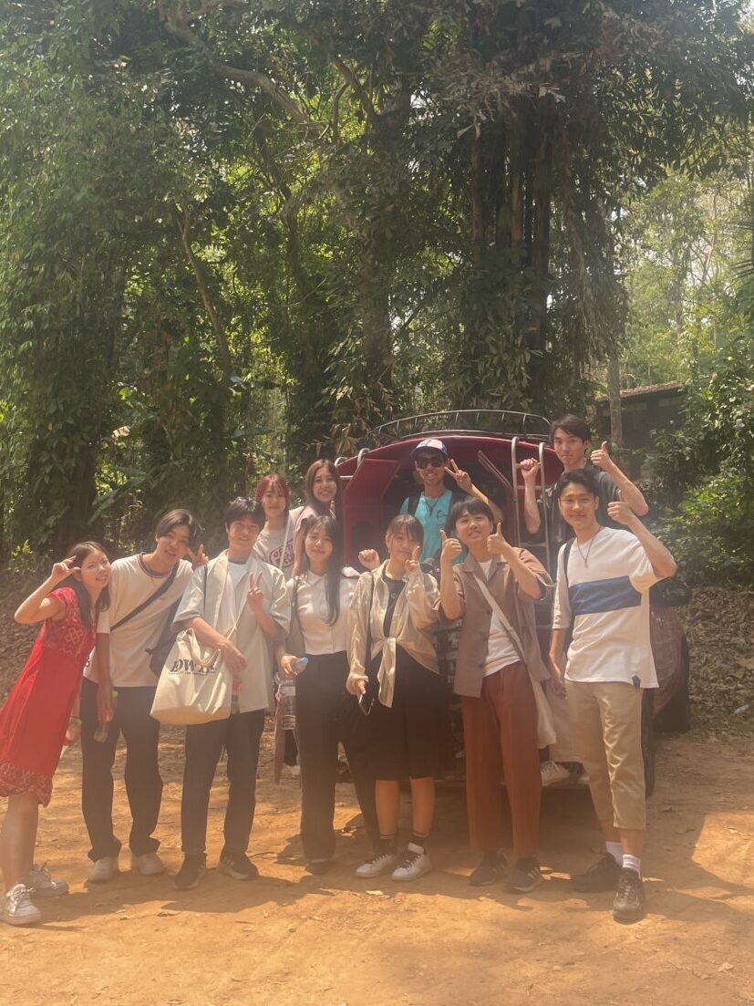 その後はチェンマイ大学日本語学科とビルマ語科の学生と互いの活動の共有や学生生活の話をした上で、学生にキャンパスツアーをしていただきました。同年代の学生との交流は、団体訪問が続く間で非常に楽しい時間となりました。