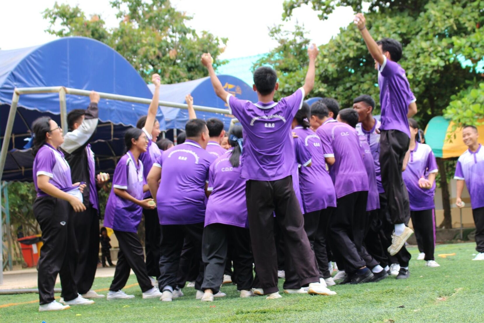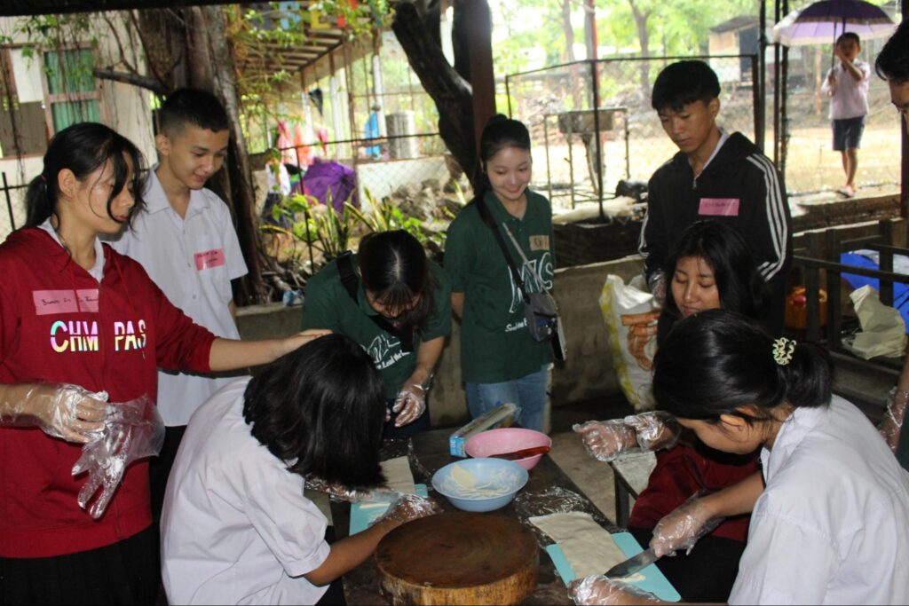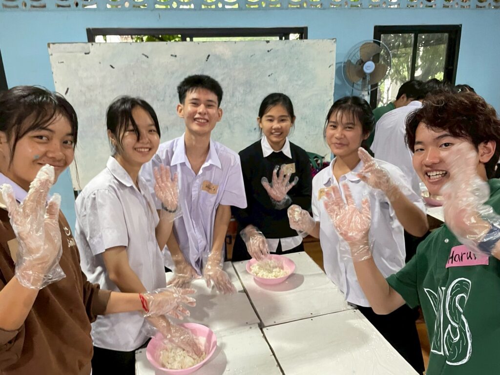 1日目はMIS側が主導し、Tシャツ染めや水風船企画、ビンゴ大会、特技披露などを行いました。2日目は現地生徒の実行委員が主体となり、民族舞踊の披露、日本とミャンマーの文化に関するディスカッション、ソムタムと白玉作り、流しそうめん体験を実施しました。最後には、2日間を振り返るシアター上映を行いました。