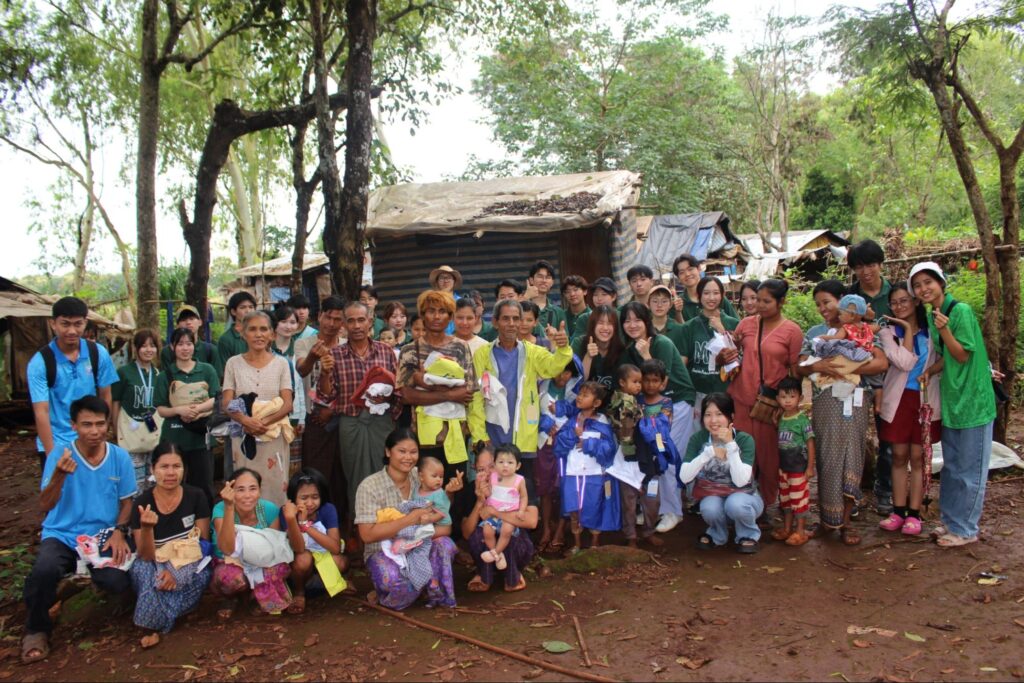 その後、複数の学校や難民キャンプを訪れ、実際に現地の人々の暮らしを自分たちの目で見学しました。日本の大学や企業、MISメンバーから集まった衣服を寄付するプロジェクトを実施し、受け取る側の反応はさまざまでしたが、現地のミャンマー避難民の方々とMIS双方にとって非常に意義のある取り組みとなりました。